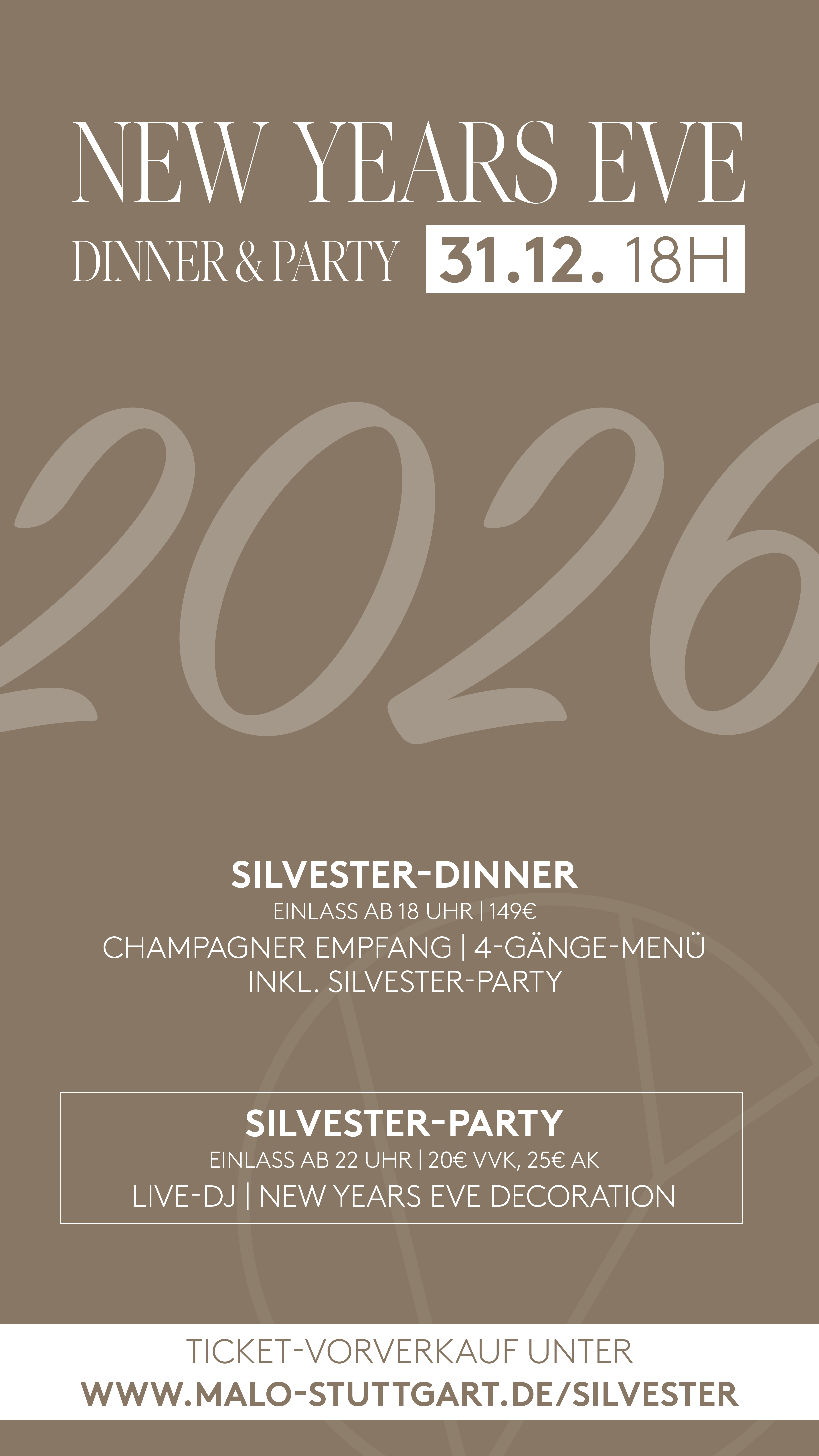 MALO – das neue Urban City Retreat im Herzen von Stuttgart. Inmitten des Großstadt Chaos bieten wir unseren Gästen eine Oase zum Relaxen, Wohlfühlen und Abschalten. Umgeben von einem Meer aus echten Pflanzen können Sie hier dem Alltag entfliehen und sich von regionalen Gerichten, einzigartigen Weinen und einem atemberaubenden Ambiente rundum verwöhnen lassen. Von Daily Sunrise, über Midday Vibes bis hin zur abendlichen Golden Hour vereint das MALO Jung und Alt unter einem Dach.